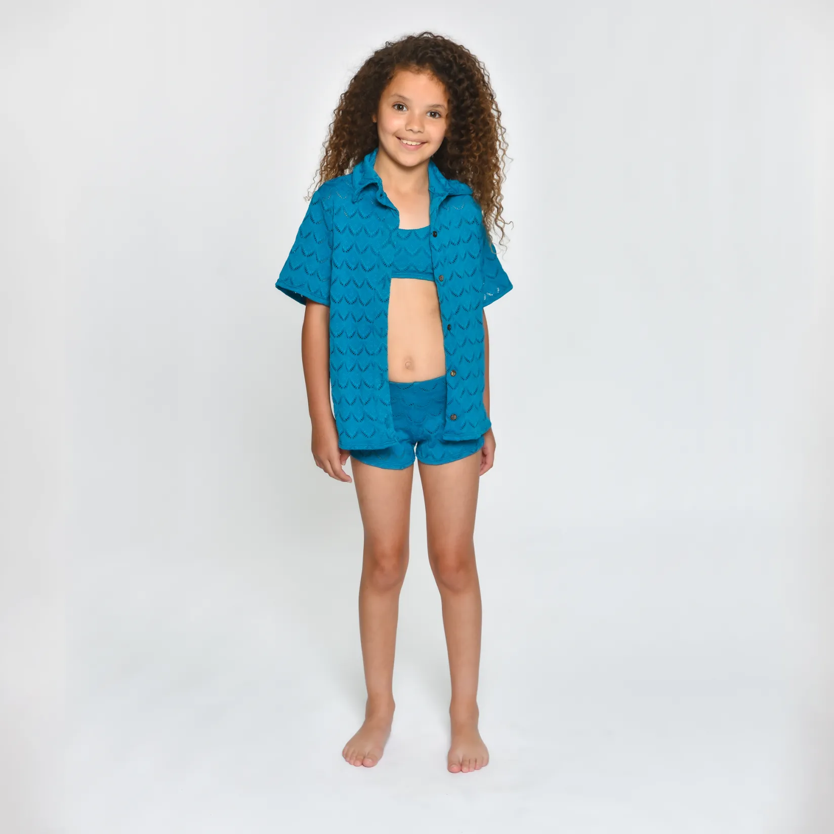 Made in Colombia 95% Polyamide, 5% ElastaneJacquard fabric with eyelet detailingButton-up shirtPull-on short style Elas…