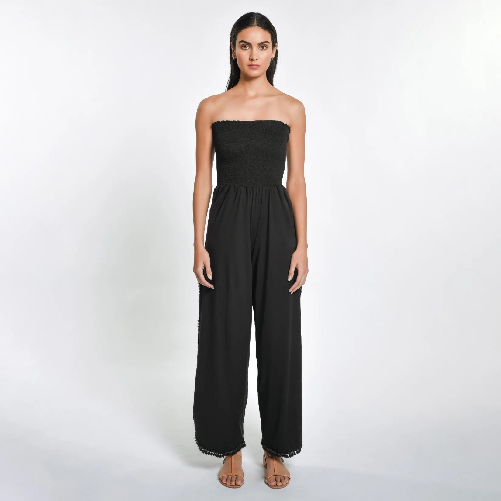 100% CottonMade in ColombiaSmocked topStraplessPull-on styleSlits at both sidesPockets