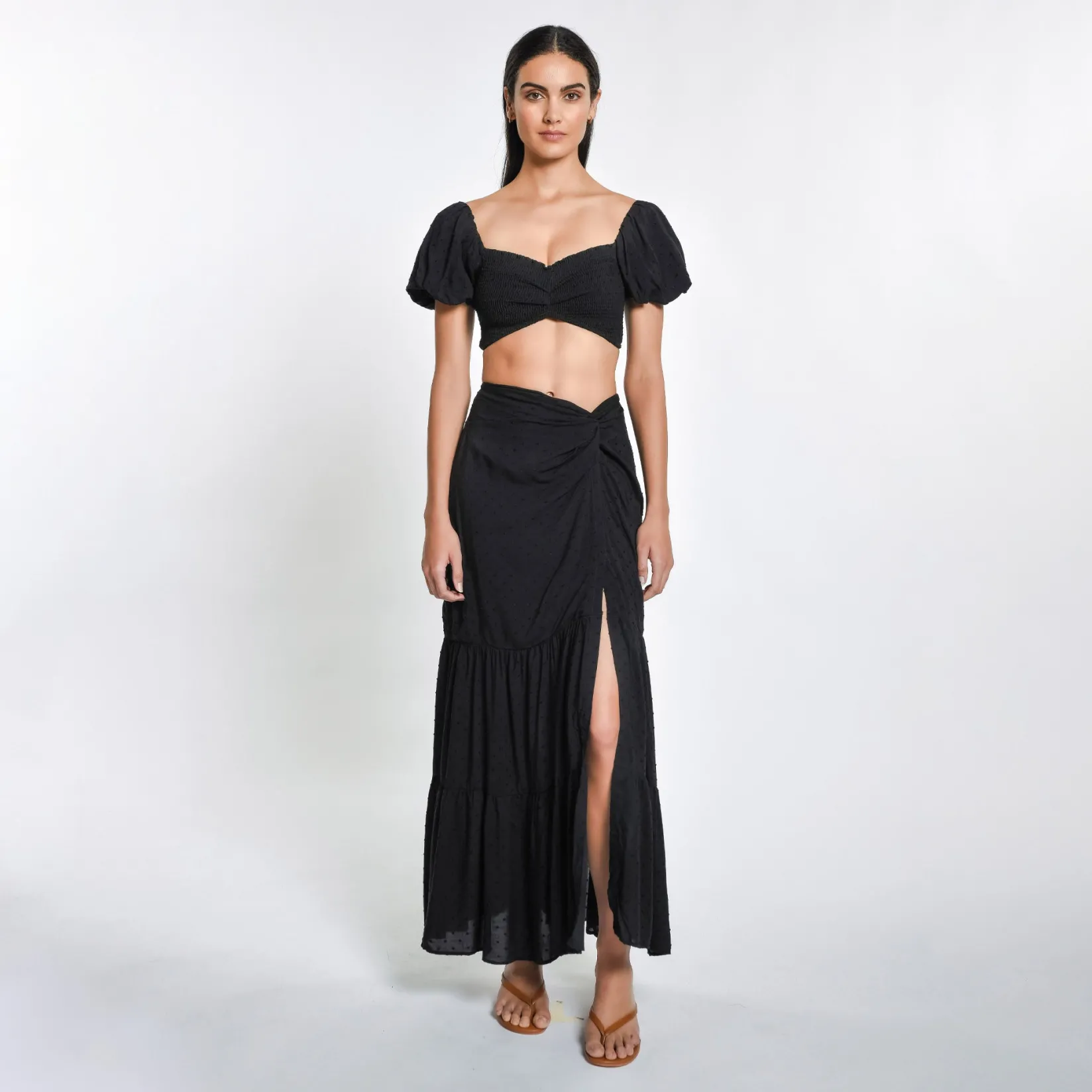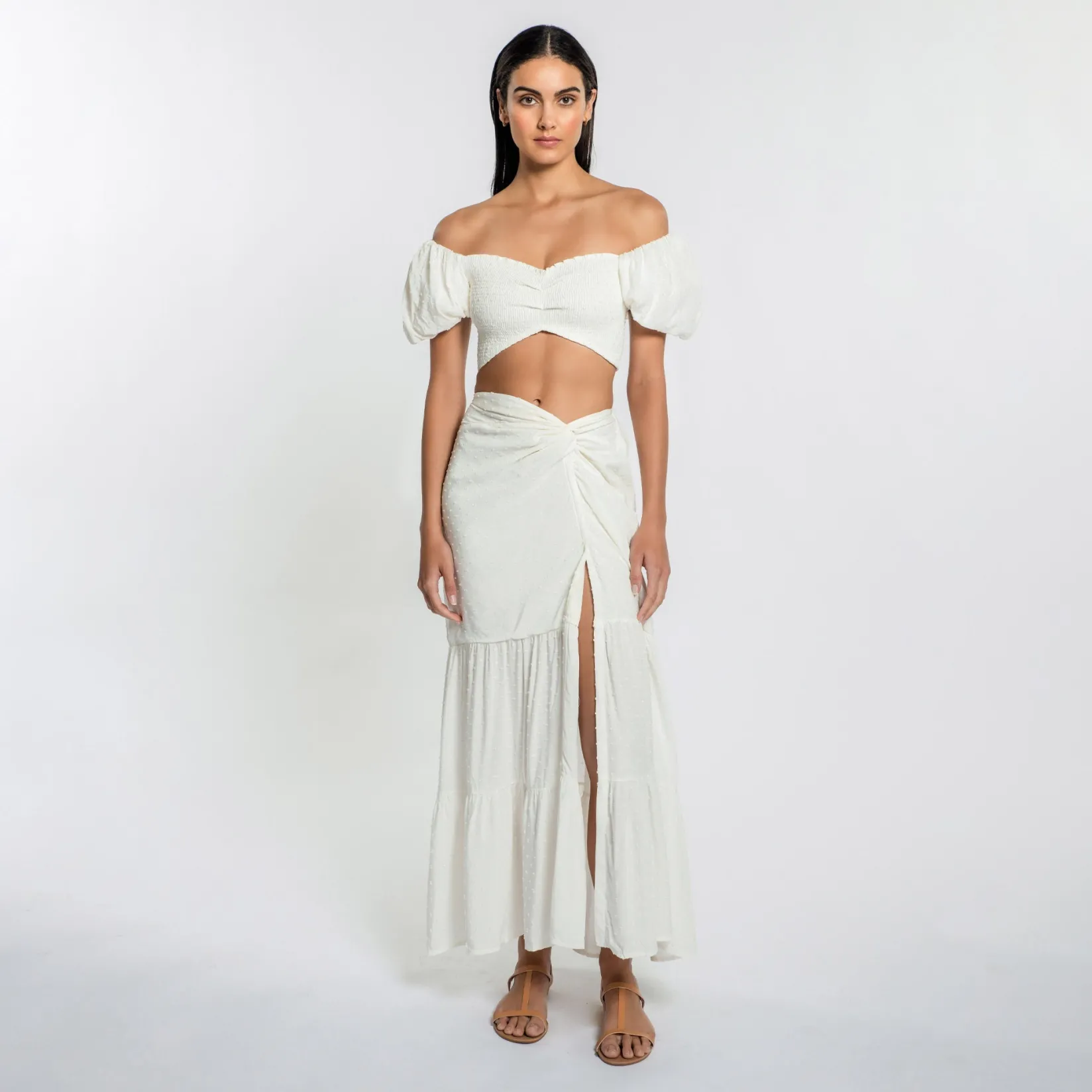 100% CottonMade in ColombiaElastic waistband Thigh high front slitKnot detail at waistLined